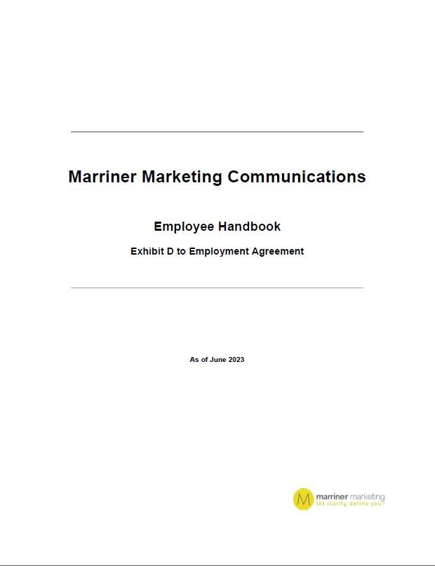 This is Marriner Marketing's Employee Handbook. Please see your manager with any questions.