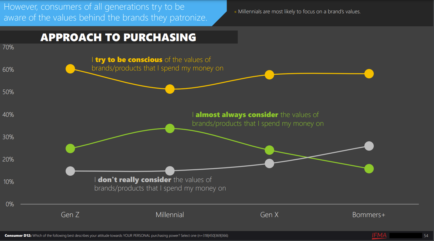A little dated (2019), but some top line info from IFMA on consumers and the role value alignment plays in purchasing decisions.